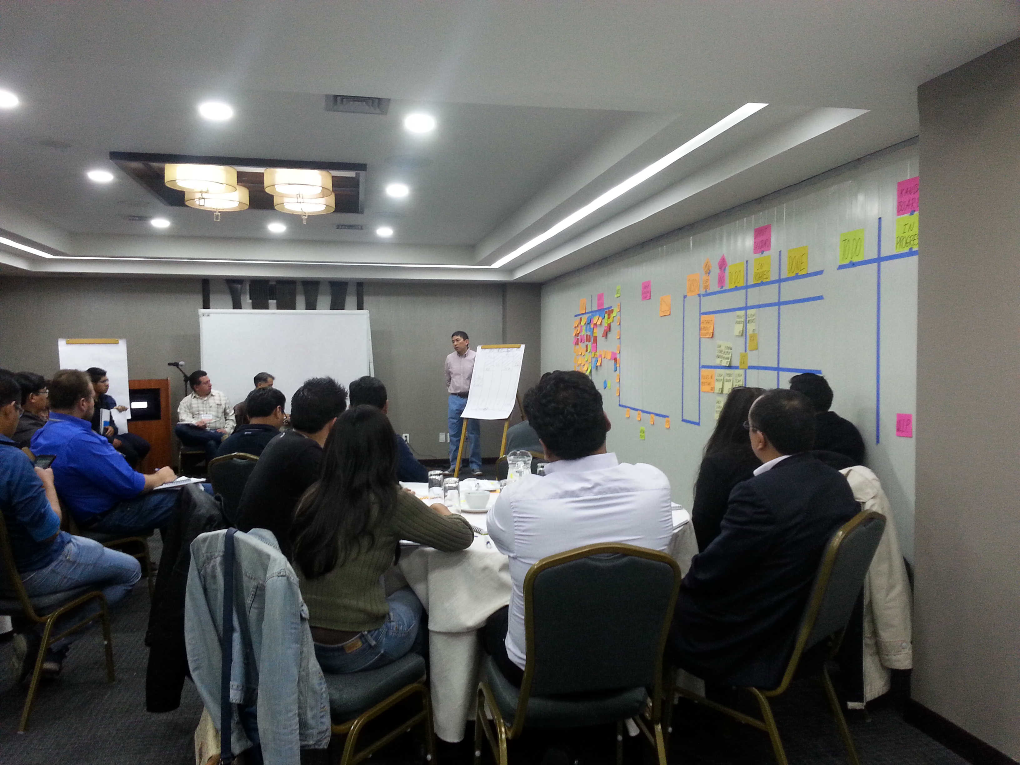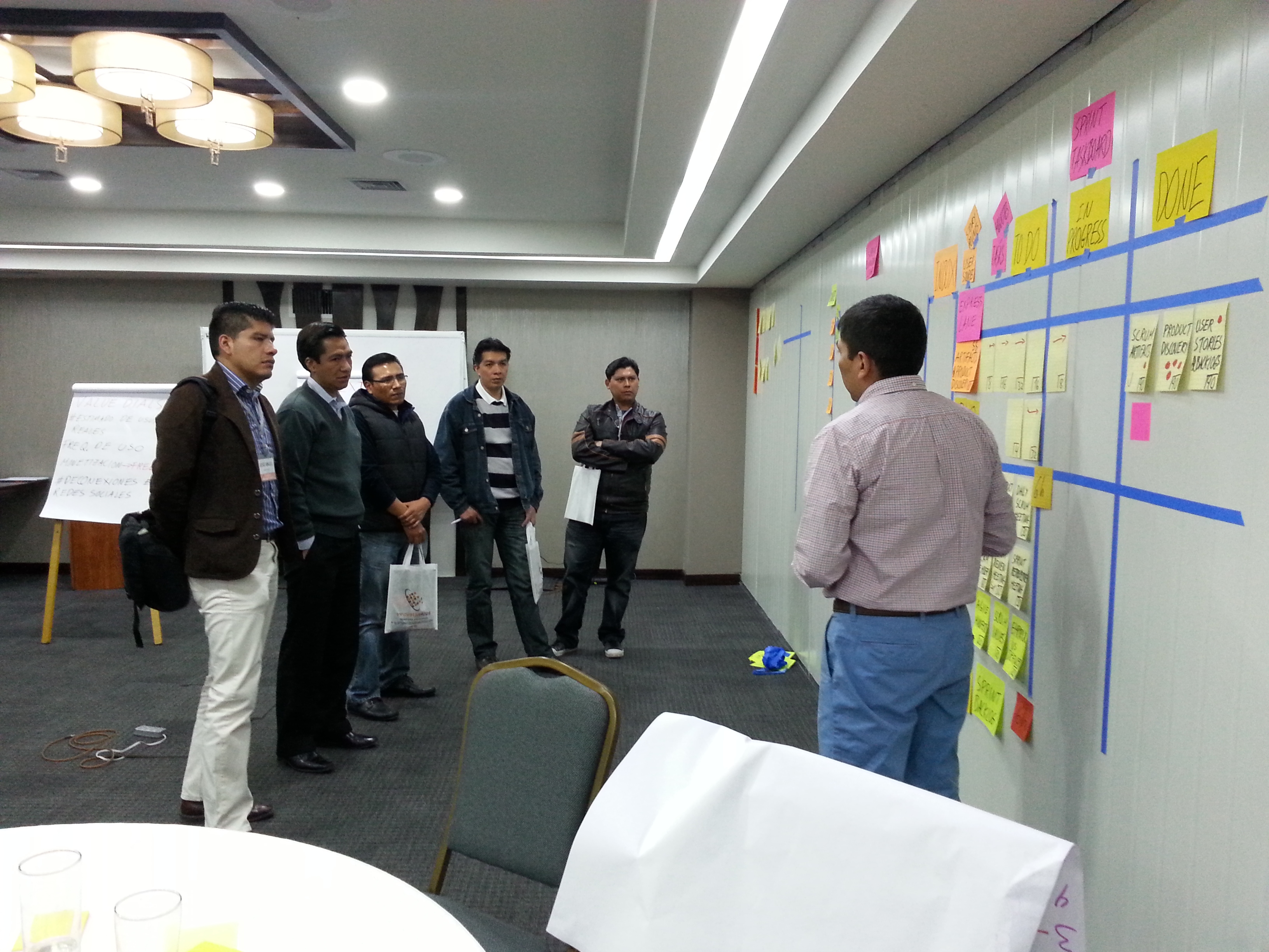 Gracias a todos los participantes que asistieron al curso certificado de Scrum Master, el curso fue todo un éxito. Las entidades que estuvieron presentes fueron el Banco Bisa, Banco Unión, Banco de Crédito y la Boliviana Ciacruz. El curso se llevó a cabo en el Hotel Stannum de la ciudad de La Paz.